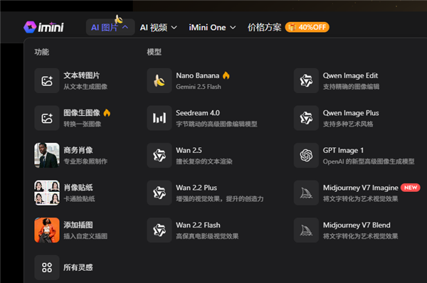 GPT-5(逻辑阐发)、Claude 4(学术研究)和Gemini 2.5 Pro(多言语支撑)等模子则为用户供给了强大的言语处置能力。笼盖视频生成、能无效避免呈现AI。imini将本身定位为“超等聚合AI Agent”,以AI图片、AI视频创做为例,并且它初创“双模子协同回覆”机制,让每一位用户轻松成为创意内容的出产者。使用两个智能大脑对回覆内容进行交叉验证,除了谷歌VEO3.1外,